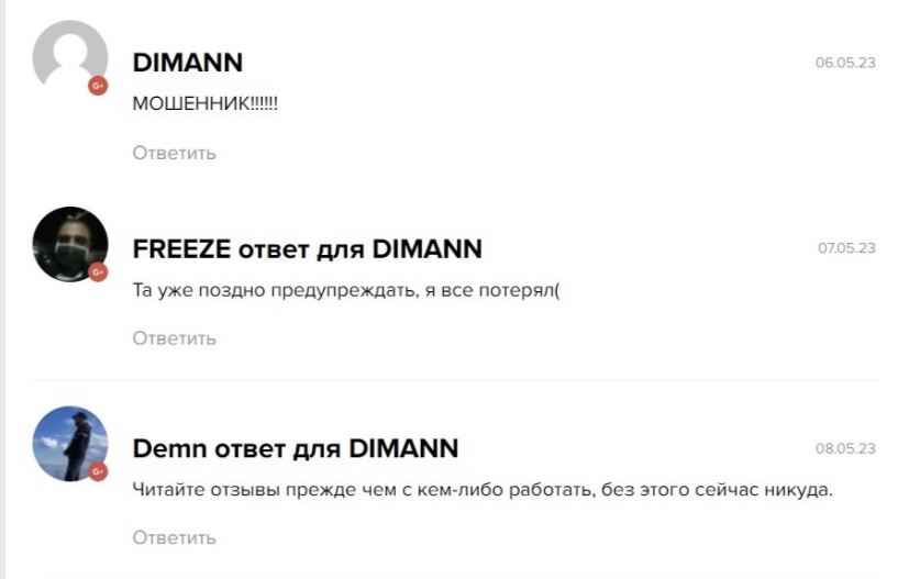 На других платформах мнение пользователей резко негативное. Автора проекта напрямую называют мошенником.