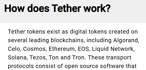 Также разработчики добавили раздел в частыми вопросами в бота. Всего здесь три вопроса: что такое Tether, как он работает и как использовать токен.