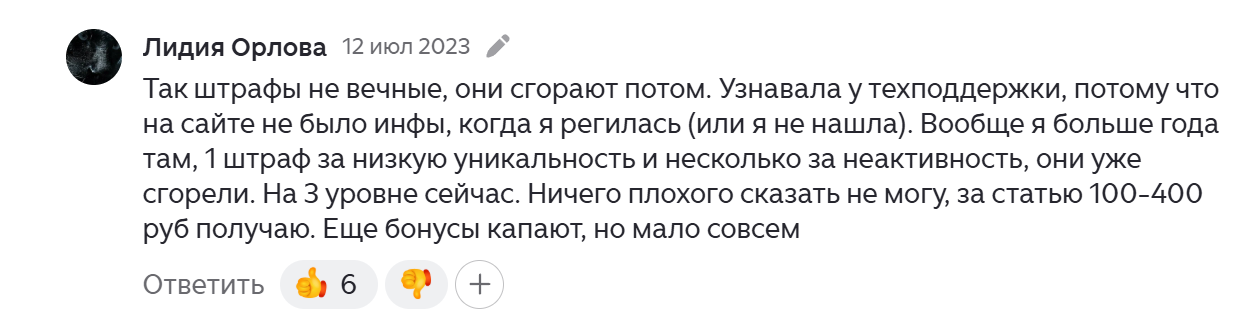 Участники проекта сами определяют периодичность создания новых материалов. При этом лучше всего добавлять не менее 1 статьи каждые 7 дней. В таком случае можно рассчитывать не только на обычный заработок, но и на бонусы в рублях.