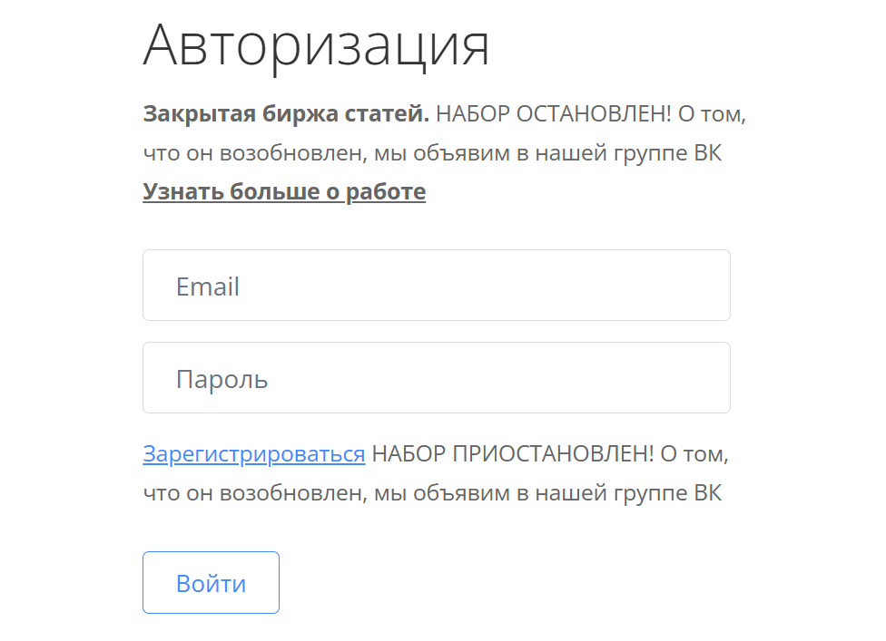 На начало 2026-го набор авторов приостановлен. Потенциальным клиентам предлагают дожидаться информации в группе ВК.