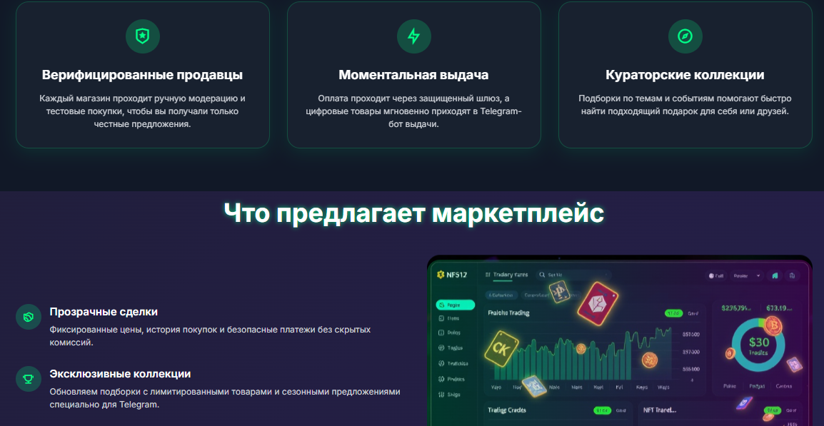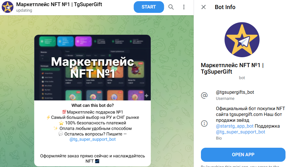 - NFT Маркетплейс NFT №1 TgSuperGift для продажи подарков – @ tgsupergifts bot;