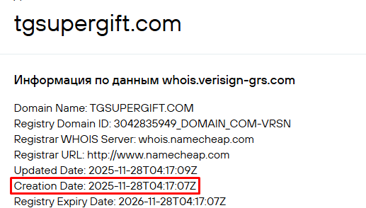 Сервис Tg super gift работает с конца ноября 2025 года. На момент написания прошло около 2-х месяцев. При этом отметим, что создатели сайта и ботов не стесняются безосновательно называть свою платформу маркетплейсом подарков номер один.
