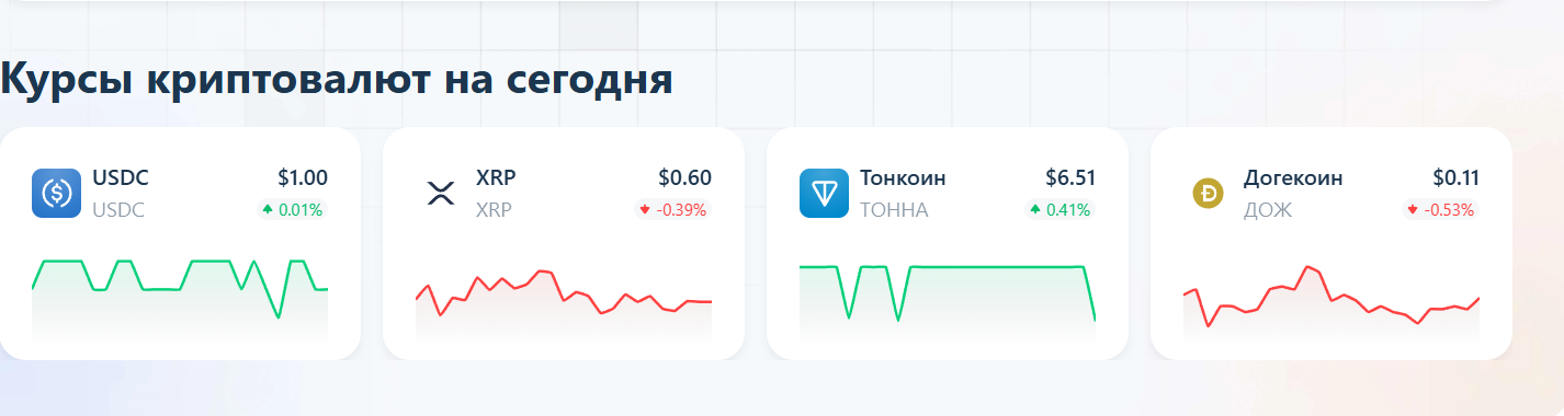 На сайте ежедневно публикуется актуальный курс криптовалют. Это дает возможность пользователям оценить целесообразность обмена.