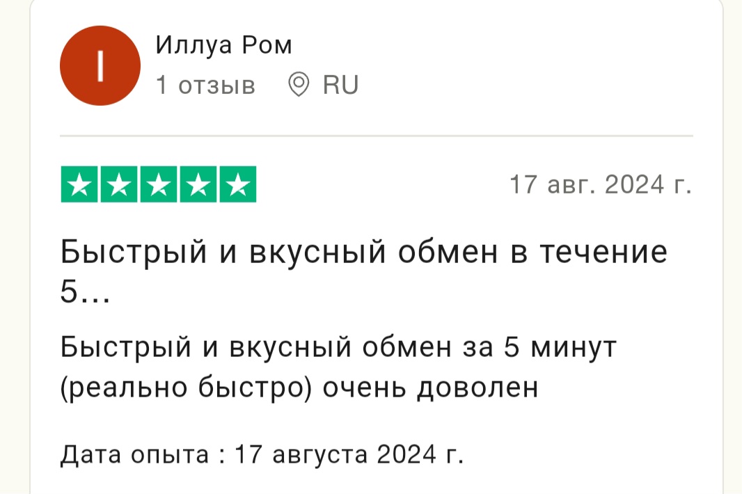 В интернете практически нет отзывов об обменнике. Возможно это связано с тем, что сервис существует всего пару месяцев. Комментарии есть на отзовике Trustpilot. Там всего 6 отзывов и все они положительные. Пользователи пишут, что обмены быстрые и комиссии низкие. Примеры приведены ниже: