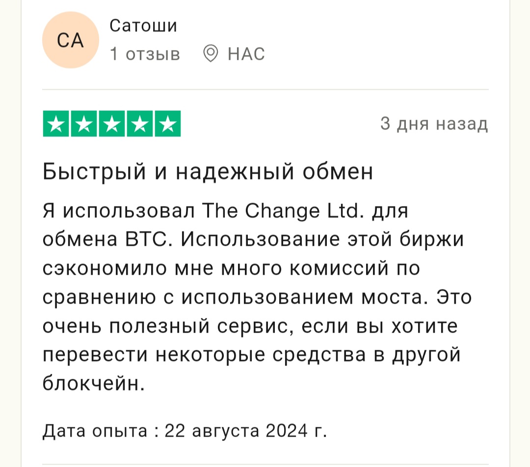 Исследование thechange лтд показало, что с обменником нужно быть осторожным. Это новая площадка. Сейчас информации о ней в сети очень мало. Со временем будет известно, насколько она надежна и безопасна.
