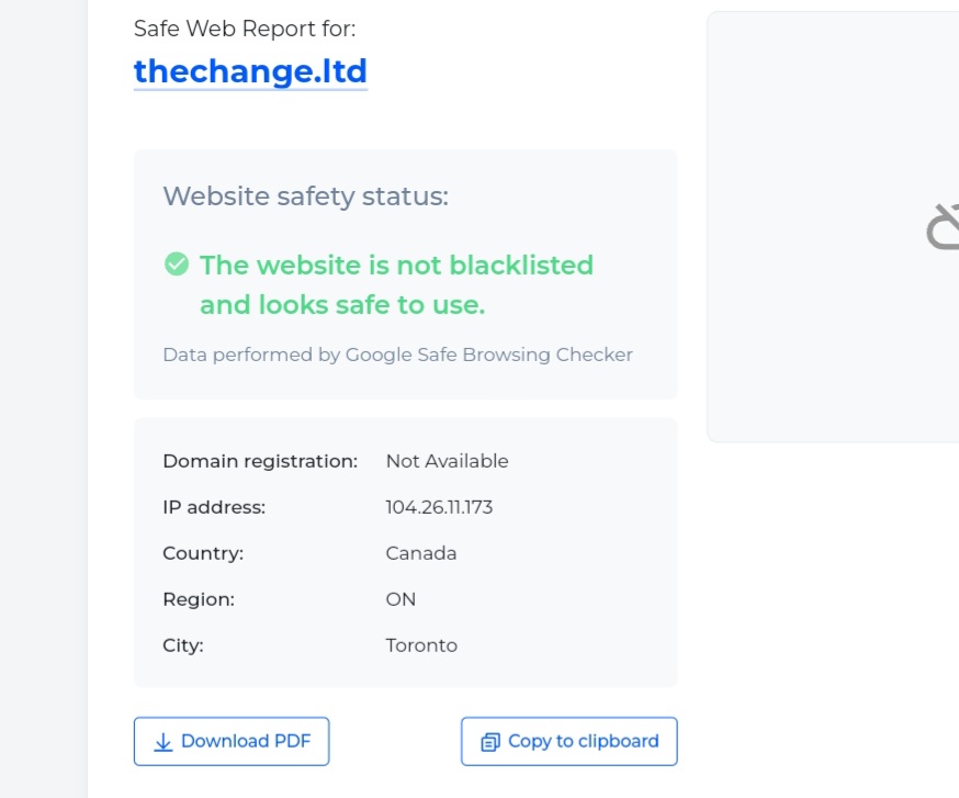 Проверка сервисом Website Safety показала, что сайт The Change ЛТД безопасен для пользователей.