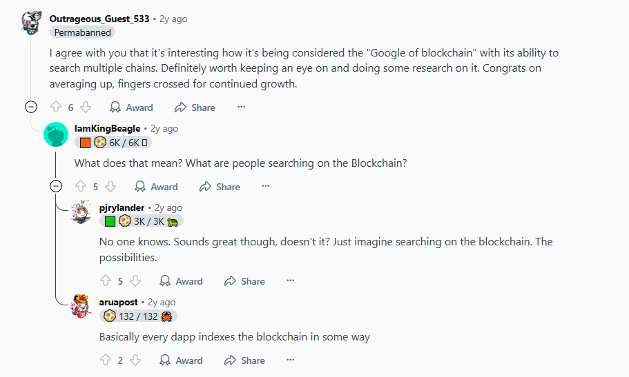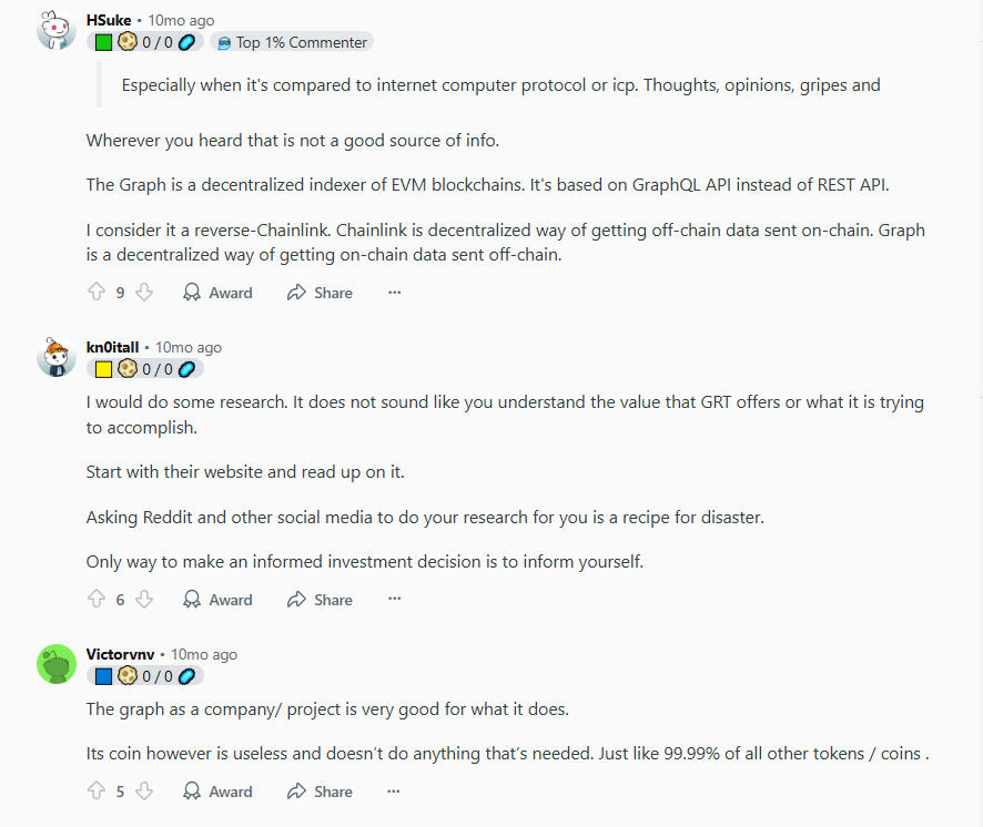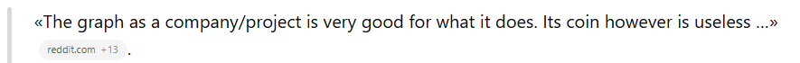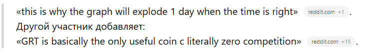 Общее мнение на Reddit довольно неоднозначное. Клиенты говорят о том, что деятельность thegraph com в целом достойна, однако ее коин бесполезен.
