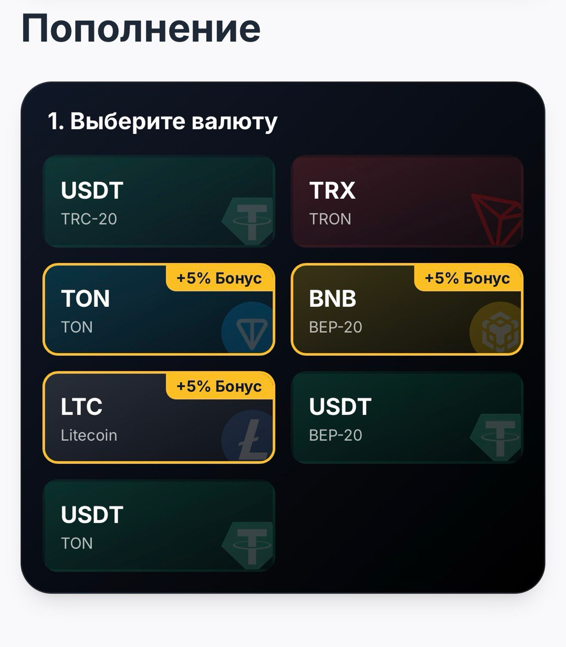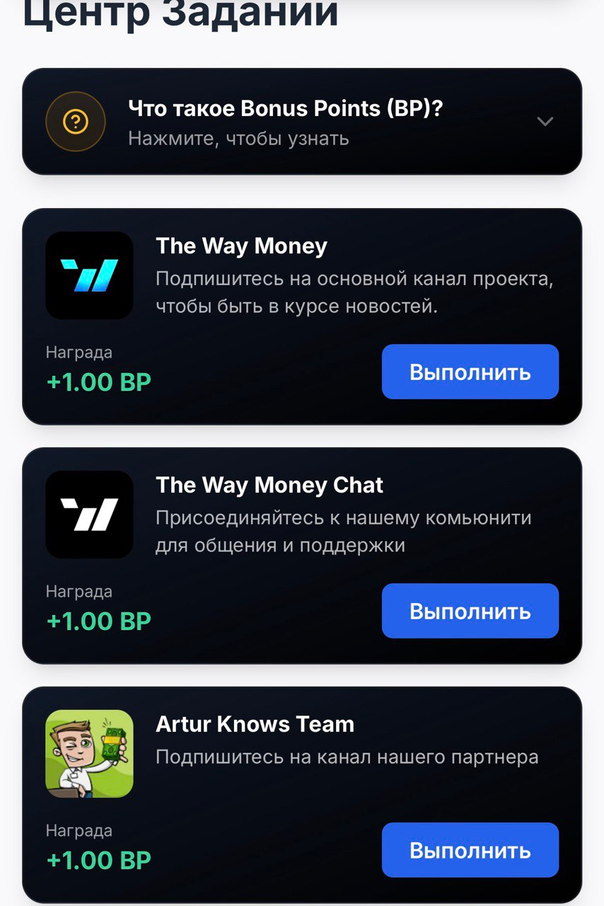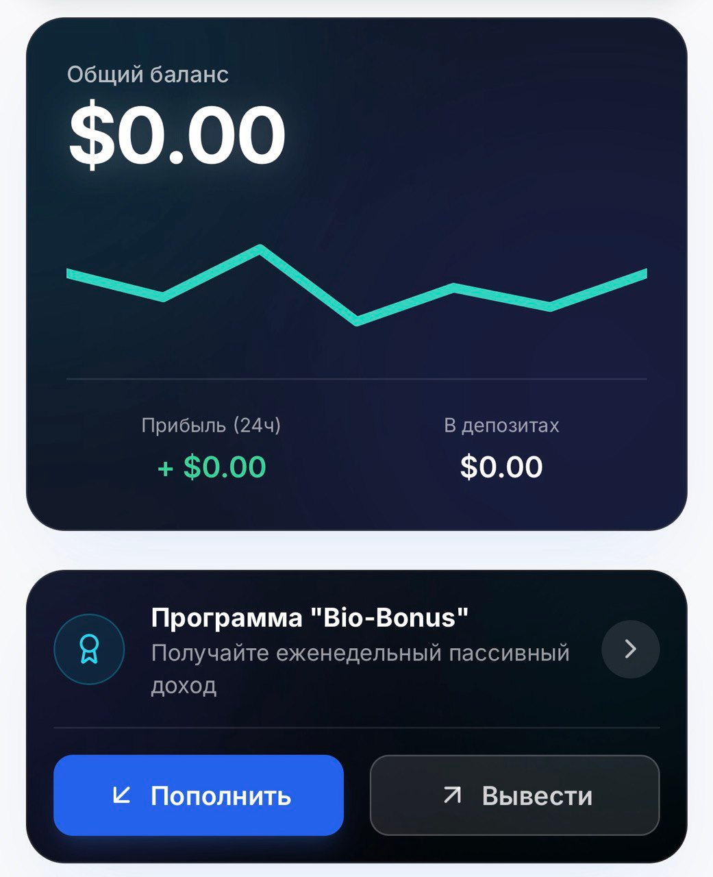 Основная активность сосредоточена именно в Thewaymoneybot. С его помощью следует запустить мини-приложение для заработка. Начисления производятся во внутренней валюте BB. В рамках программы Bio Bonus любой желающий может вложить средства в крипте USDT, BNB, LTC, TON или TRX и получать с них пассивный доход.
