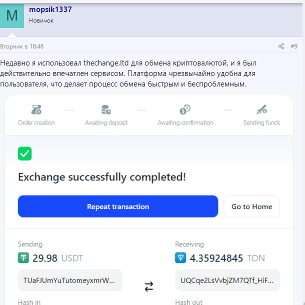 Отзывов о работе сервиса в сети мало, зато они положительные и подтвержденные: заявить об успешной транзе недостаточно, в нашем случае это доказано скринами.