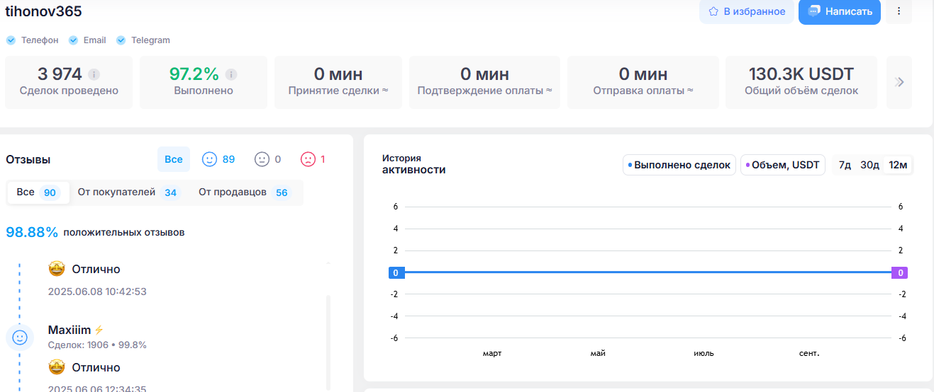 Раньше команда tihonex работала через биржу Garantex. В январе 2025 года из-за проблем с этой площадкой перешли на Rapira. На профиле Rapira у них накоплено почти 4000 завершенных сделок. Планируют также выход на биржу ABCEX.