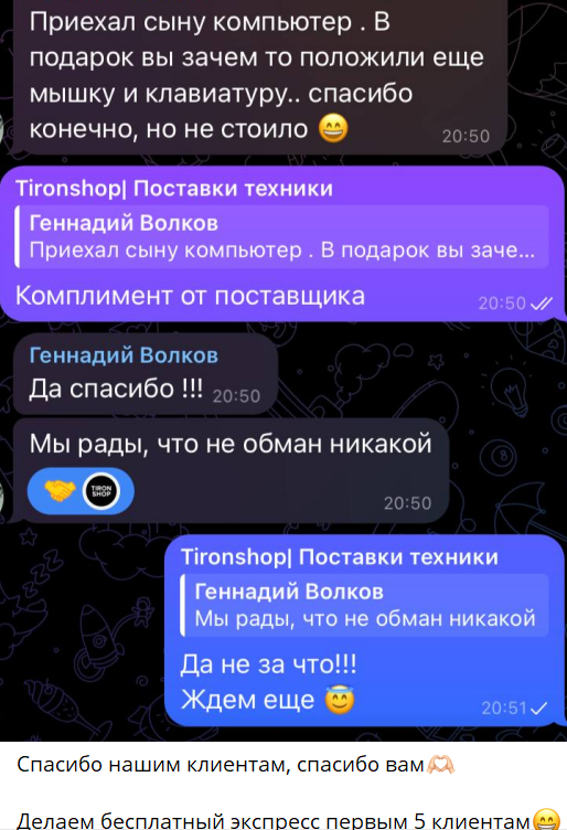 tironshop магазин в телеграме отзывы