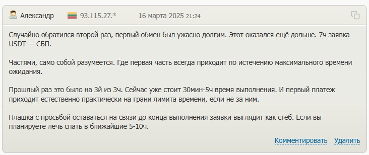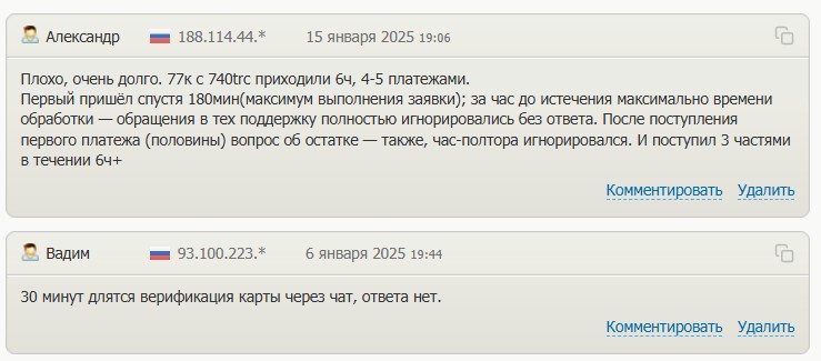 В интернете ситуация противоречивая. Есть как позитив, так и много негатива. Среди проблем пользователи выделяют слишком медленный обмен – иногда до суток и дольше. Поддержка часто затягивает процесс, требуя подтверждения оплаты и другие доказательства перевода средств.