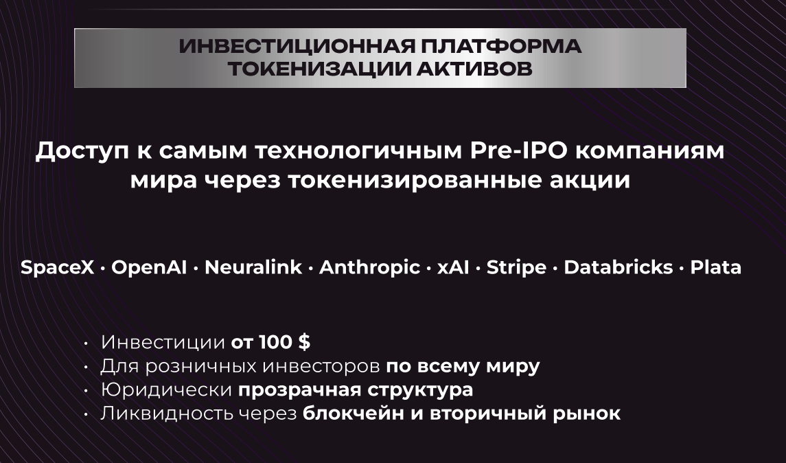 Пользователям предлагают инвестировать в покупку токенизированных акций в передовые компании. Инвесторам можно войти всего со 100 долларов. Хотя авторы говорят об юридически прозрачной структуре, ни одного документа компании, в том числе, внутреннего не предоставляется.