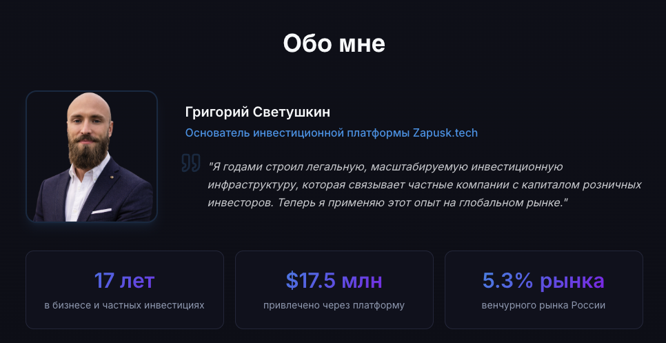 В качестве создателя проекта числится Григорий Светушкин – основатель инвестиционной площадки Запуск.