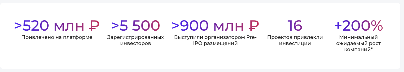 Что значит 5,3% венчурного рынка России в записи выше – нам не совсем понятно. На его площадке Запуск указано, что платформа привлекла только 520 миллионов рублей за 5 лет своего существования и всего в 16 проектов.