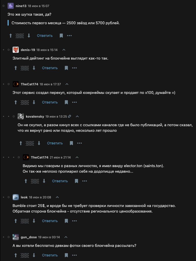 Больше всего претензий в отзывах о TonDating Bot предъявляют в отношении цены. Люди в отзывах о TON Dating утверждают, что именно из-за дороговизны подписки сервис не может возыметь широкого распространения.