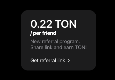 В соответствии с ней, за каждого зарегистрировавшегося пользователя система выплачивает 0,22 TON. Это, в свою очередь, эквивалентно 1,5 долларам США.