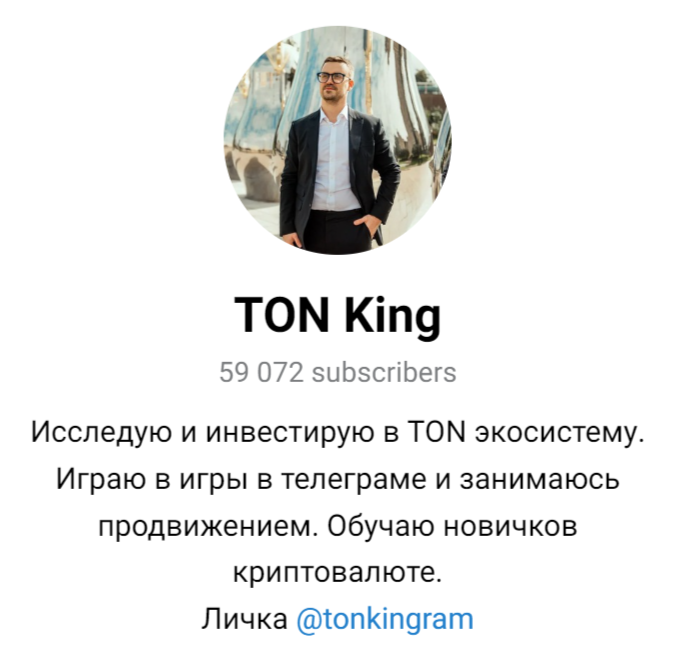 В качестве основного проекта в соцсетях доступен проект Ton King. Канал в Telegram запущен еще с августа 2020-го и работает по ссылке tonkingem. За более чем 4-летнюю деятельность автор сумел собрать около 60 тыс. пользователей, но говорить о честности такой аудитории не приходится.