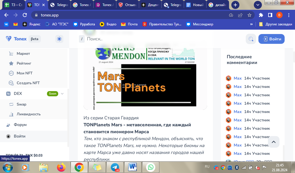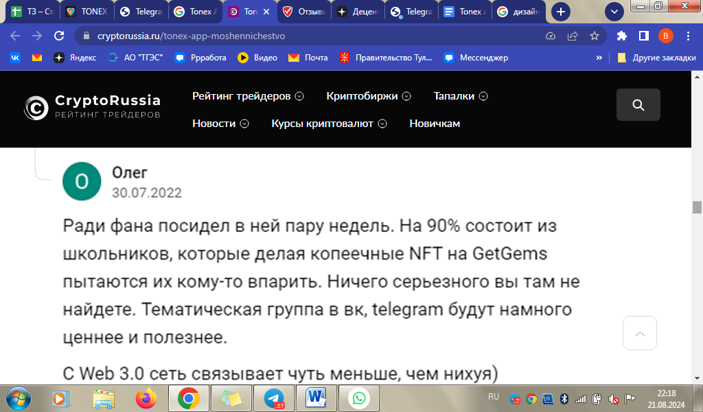 Негативных отзывов о tonex app нам найти не удалось. Комментарии под постами в официальном Телеграмм-канале открыты. Но там пользователи задают прикладные вопросы и нововведения, а не делятся впечатлениями о социальной сети.