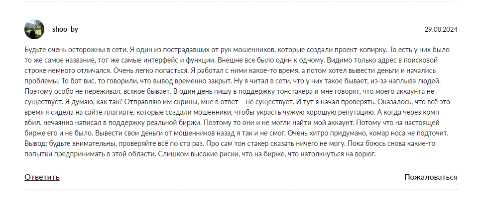 Отзывы на tonstaker io