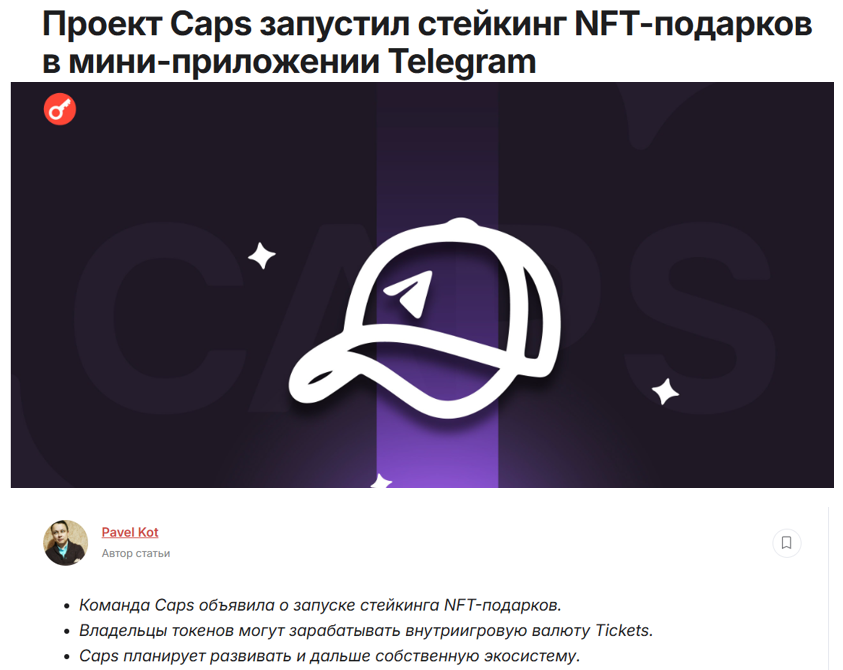 • Участвовать в стейкинге NFT‑подарков через сторонние решения (например, проект Caps предлагает earn‑механизмы за хранение подарков).