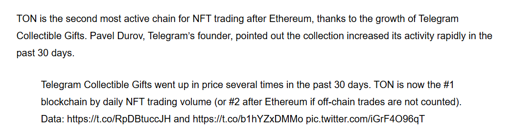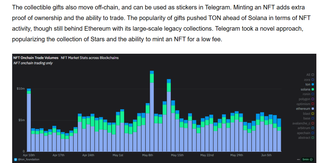 TON стал второй по активности NFT-блокчейн после Ethereum, именно благодаря Collectible Gifts.