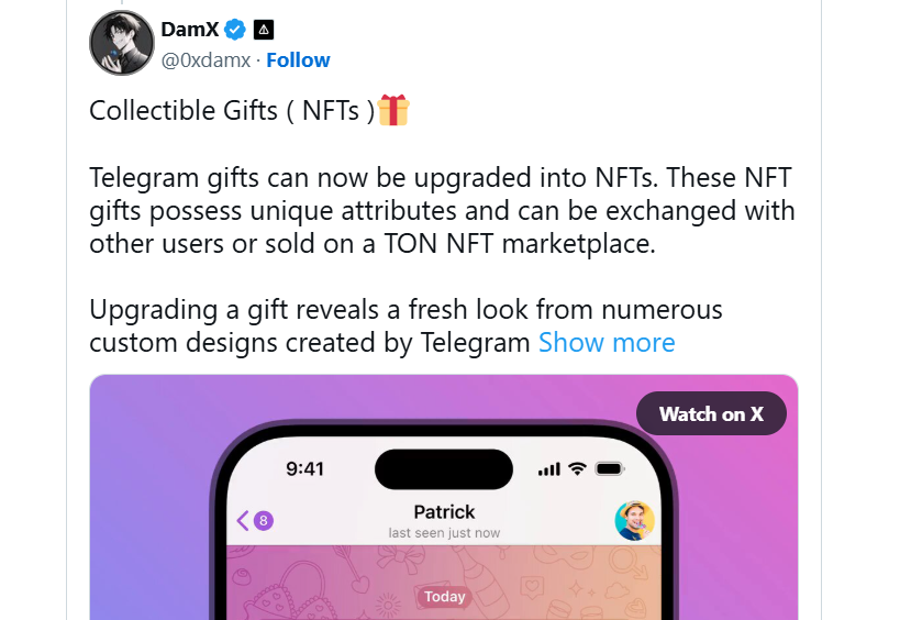 Обсуждения начались с официального заявления в Telegram о запуске Collectible Gifts в январе 2025 г. и возможности превращать подарки в NFT с помощью звездочек. Далее CryptoNews добавил, что такие подарки можно продавать на TON‑маркетплейсах, после раскрутки они становятся уникальными цифровыми сувенирами.