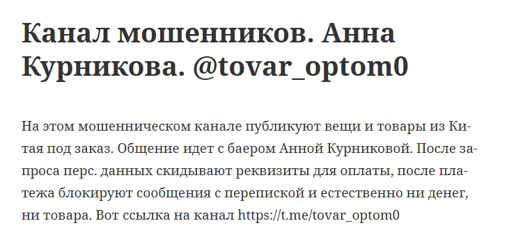 Если вы были клиентом канала tovar_optom0, расскажите о своем опыте в комментариях.