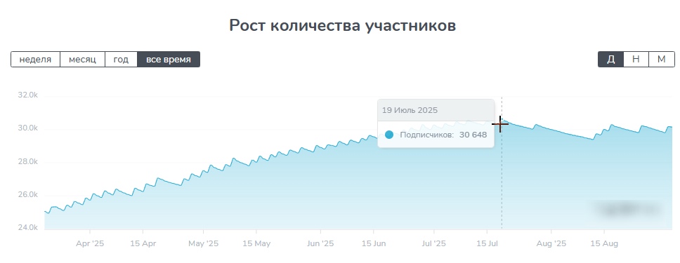 Отсутствуют упоминания в других источниках, при этом подписчики прибавляются лесенкой. Откатов не наблюдается, но не исключен риск использования накрутки.