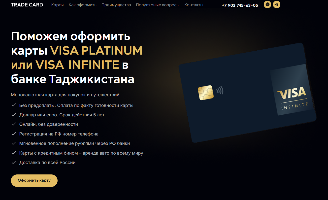 Trade Card – компания, которая предлагает оформление зарубежных карт VISA. Раньше сервис работал с банками Казахстана и Таджикистана, но в последнее время представители платформы говорят о том, что из-за введенных ограничений правительством Казахстана, оптимальным вариантом является получение таджикской карты. В ходе обзора оценим, насколько безопасно работать с площадкой.