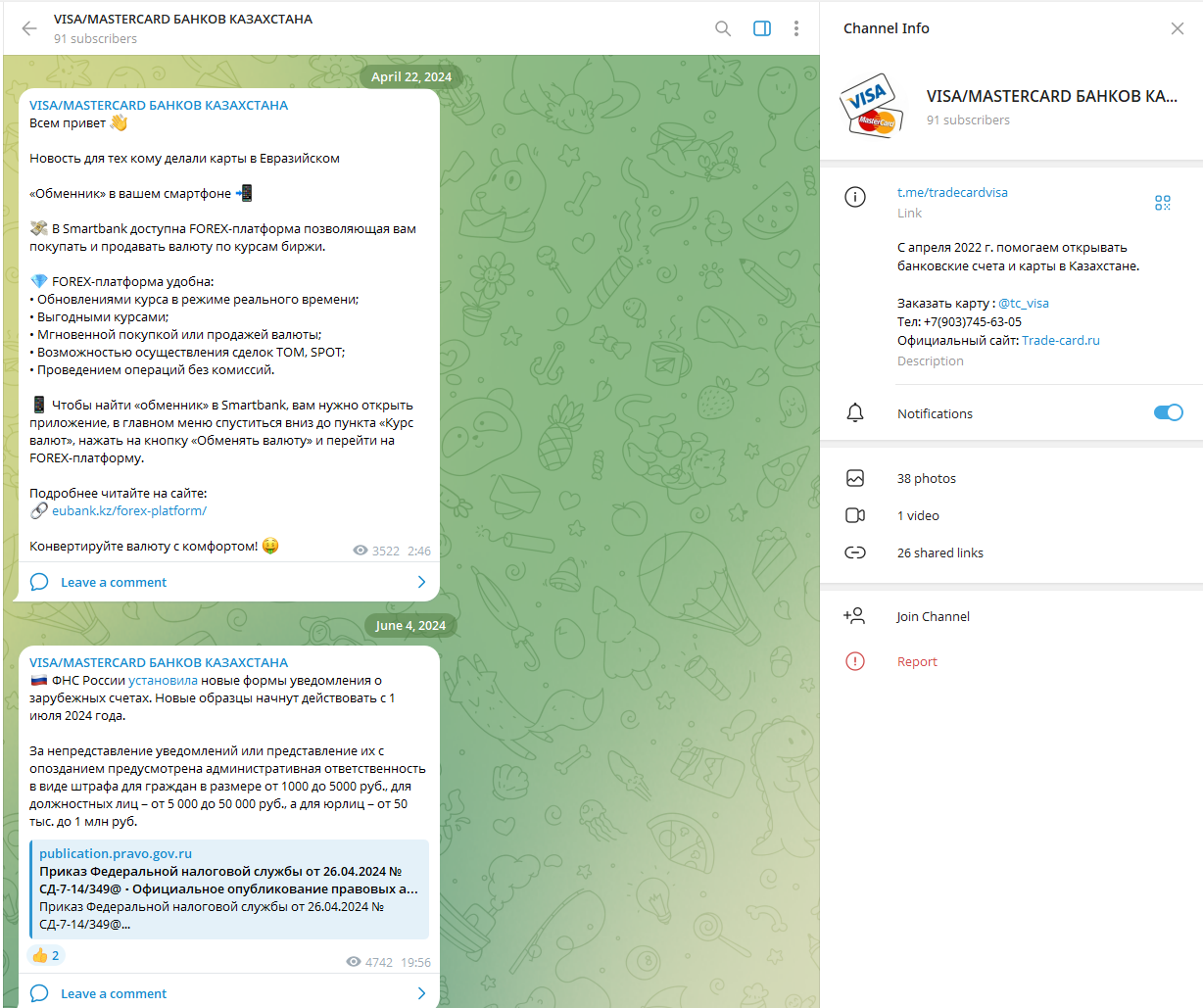 Сообщество достаточно маленькое, но публикации набирают тысячи просмотров. Вероятнее всего, потенциальные клиенты просто смотрят информацию о сервисе, чтобы оценить перспективы заказа карты. Представители платформы редко выходят на связь с аудиторией. Последняя запись датирована началом сентября 2025 года, а пост до этого вышел аж 4 июня 2024 года. Комментарии на канале открыты, но их не оставляют. Для связи с поддержкой предусмотрен аккаунт в Телеграм @TC_Visa, email info@trade-card.ru и телефон +7 (903) 745 -63-05.
