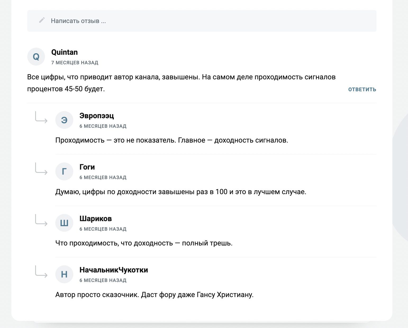Независимые отзывы о трейдинг телеграм-боте Crypto Sentinel в большинстве носят негативный характер. Есть несколько негативных комментариев от подписчиков, которые жалуются на завышенную статистику и убытки при реальной торговле по рекомендациям канала.