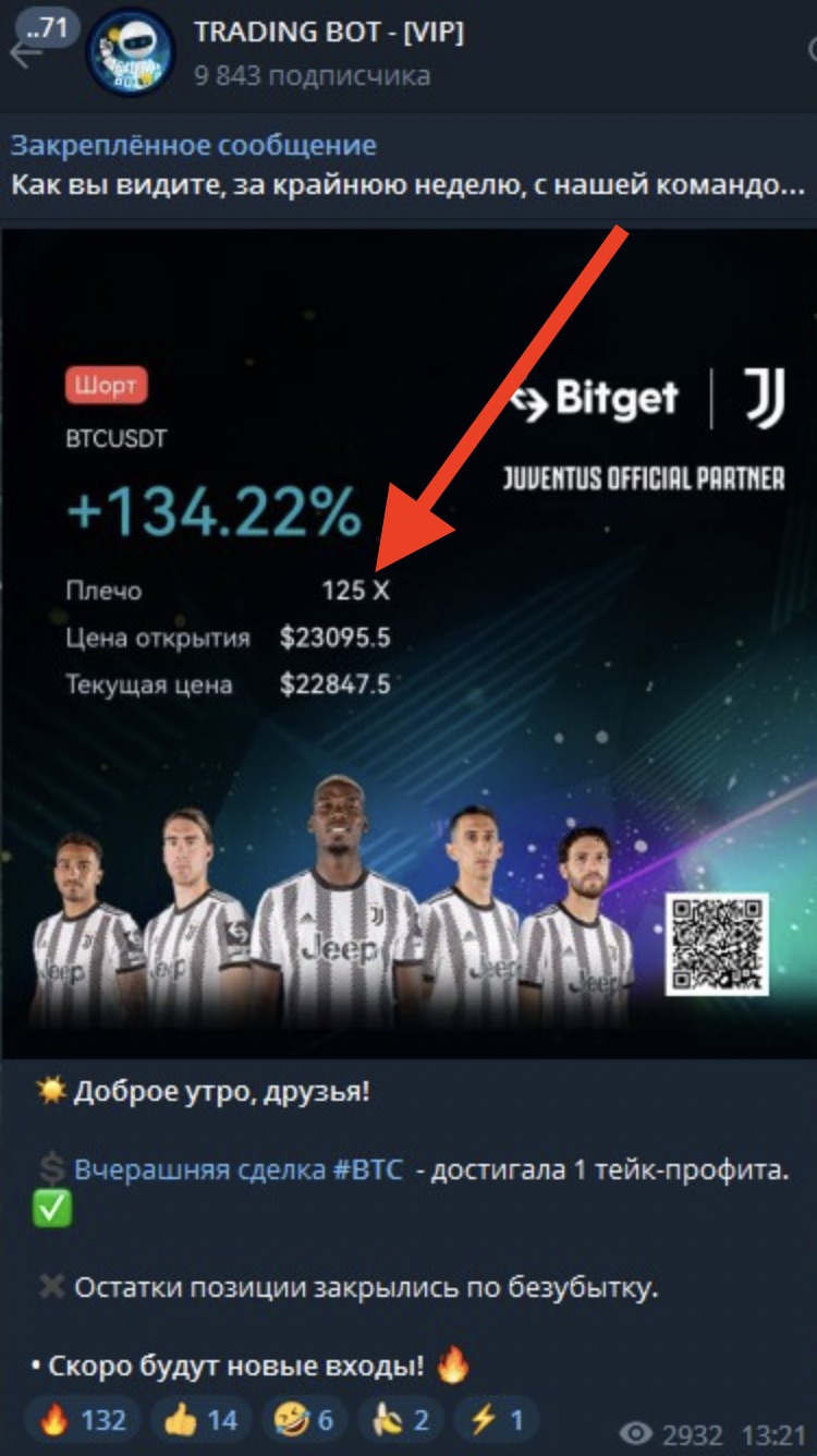 Trading Bot — мошеннический канал. Анонимность администраторов, отсутствие реальных отзывов, сомнительное качество рекомендаций с завышенными рисками без описаний причин входа — все указывает на скам. По схеме заманивают обещаниями высокой доходности, ведут торговлю на демо-счетах и впаривают бесполезную подписку.