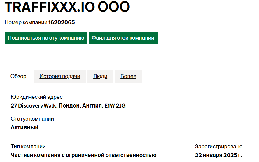 Регулируется ли Traffixxx? Юридическое лицо TRAFFIXXX IO действительно зарегистрировано в Великобритании, это правда. Мы проверили это в официальном реестре.