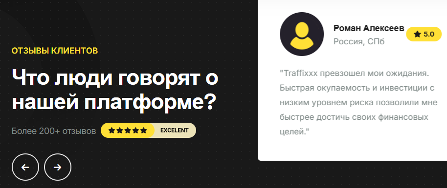 На собственном сайте Traffixxx исключительно позитивные отзывы об инвестировании в этот проект. Что неудивительно, написать на своем ресурсе комментарии нетрудно.