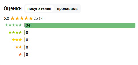 На платформе у продавца 34 положительных оценки покупателей и 11 от продавцов. Они формируют рейтинг в 5 звезд из 5 возможных.