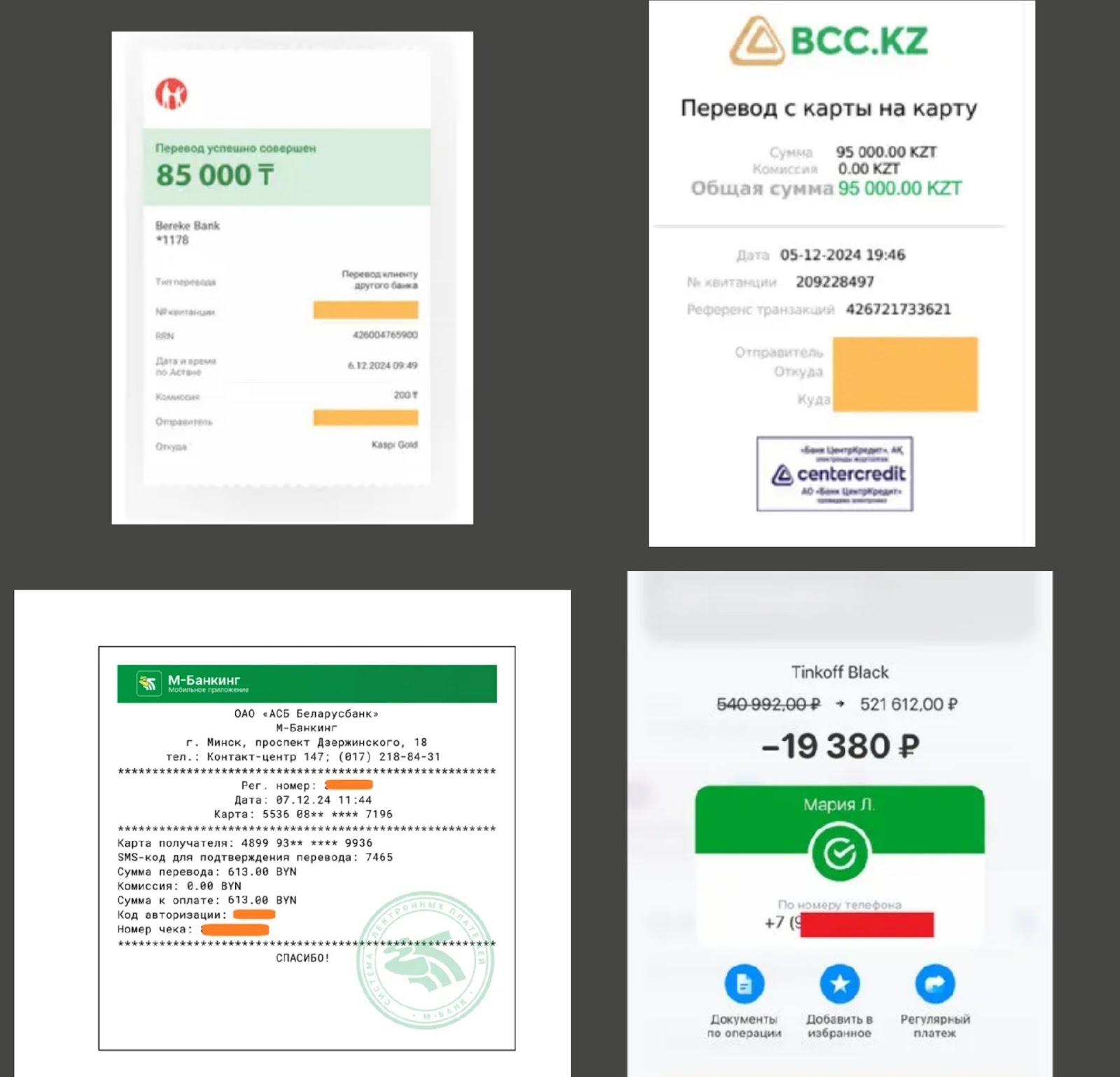 На сайте прикладываются чеки с выплатами клиентам из Белоруссии, Казахстана и России. На некоторых видны даты, и они от 2024 года, хотя сайт был создан 2 месяца назад.