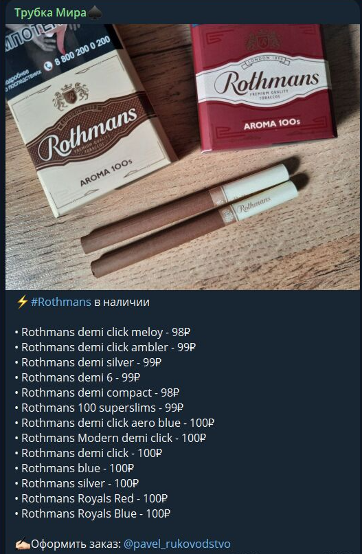 Павел Жердев — продавец сигарет, которому принадлежит магазин в Телеграмме Трубка Мира. Он обещает покупателям низкие цены и большой ассортимент табачной продукции. Проверим, что собой представляет этот магазин и стоит ли с ним связываться.