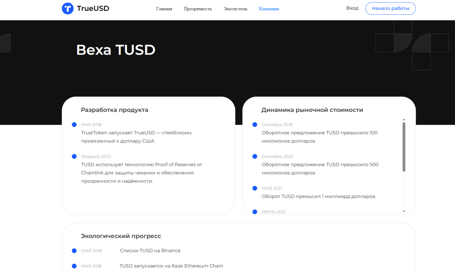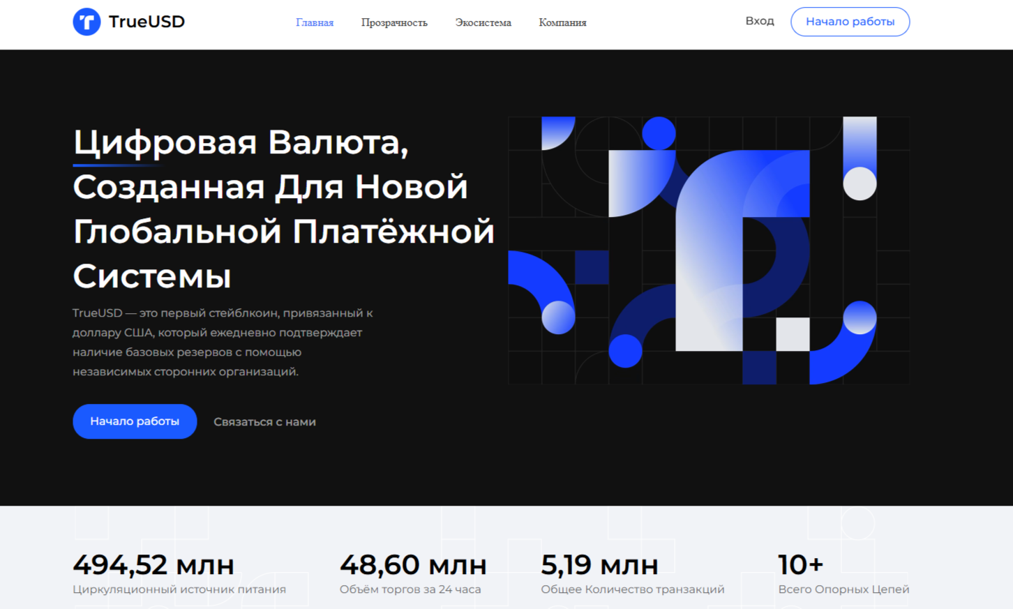 Официальный портал электронной монеты имеет довольно банальный дизайн для ресурса, предоставляющего единственный актив, обеспеченный USD. В хедере мы видим вкладки «Главная», «Прозрачность», «Экосистема», «Компания». Последний раздел знакомит читателей с организацией, которая разработала свой продукт в начале 2018 года. На сайте нет точной информации о компании-разработчике криптовалюте, ее лицензиях и регистрационных документах.