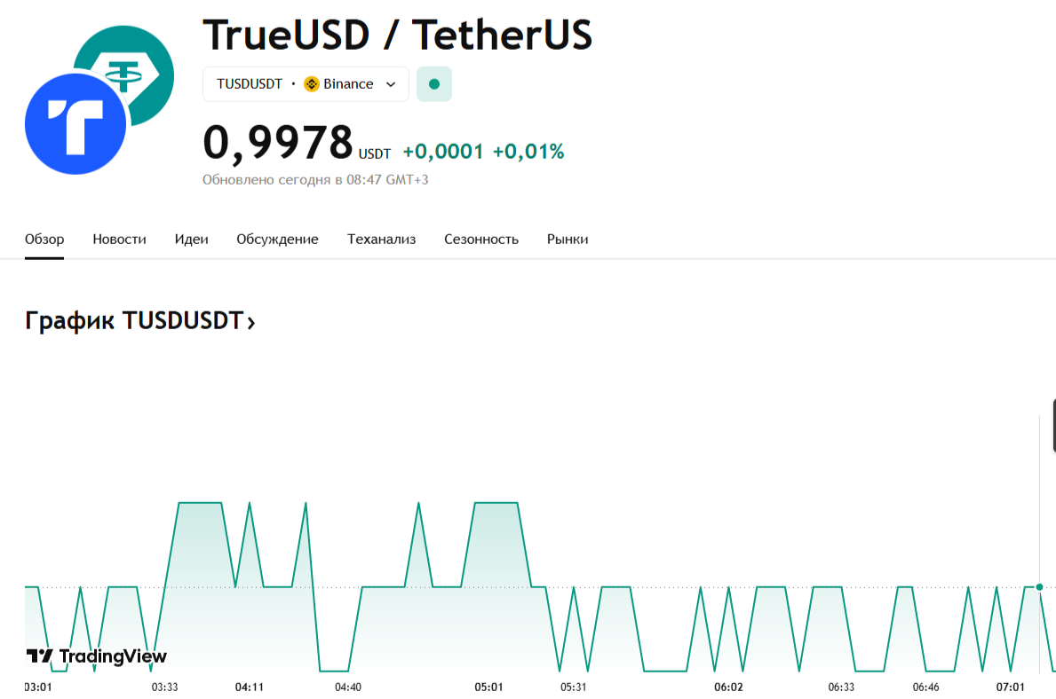 Стоимость криптовалюты Tusd