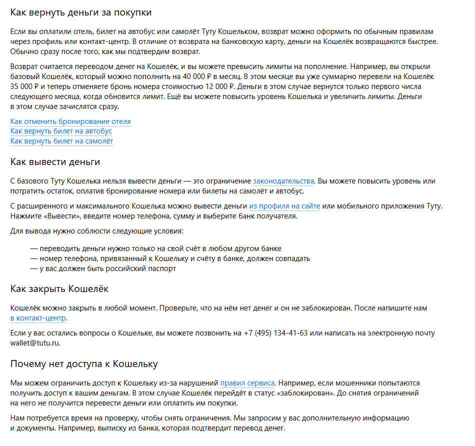 • электронная почта: info tutu ru для общих вопросов и wallet tutu ru для вопросов по кошельку.