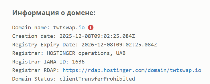 «ТВТсвап» позиционируется как некастодиальный криптообменник с конфиденциальными сделками и низкими сборами. На стартовой странице сообщают о многолетней работе и 130 000 проведенных обменах хотя эти цифры ничем не подтверждены. На деле же доменное имя зарегистрировано в декабре 2025 года, то есть реальная история работы TWTswap io на февраль 2026 составляет менее полугода.