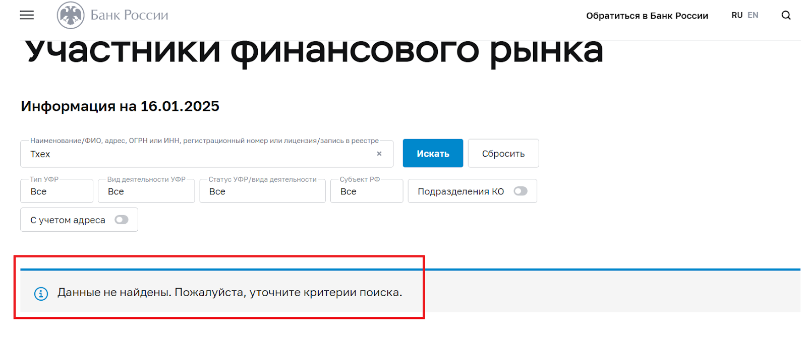 Про руководителей Tx Exchange ничего неизвестно. Офис компании не указан. Дорожная карта не публикуется. Мы проверили домен сайта, и он функционирует только с ноября 2024 года.