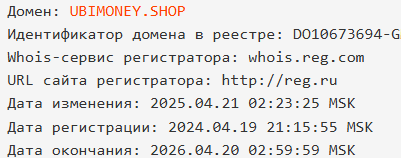 Анализ домена UbiMoney Shop показал, что проект работает с 2024 года. Политика AML и защиты персональных данных последний раз была обновлена в 2023 году, а значит просто взята с прошлого обменника команды либо вообще скопирована и не имеет отношения к реальности.