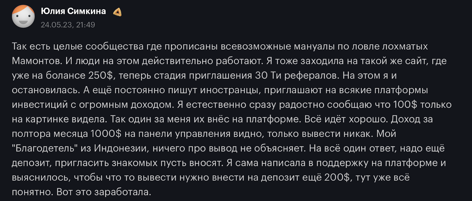 Особенно часто встречались истории про реферальную программу. Человек приводил нужное количество людей, тратил на это время и нервы, а в итоге заработанные «бонусы» от друзей так и висели мертвым грузом. Некоторые прямо говорили, что чувствовали себя обманутыми: сервис показывал красивые цифры на экране, но в реальности ничего вывести не давал.