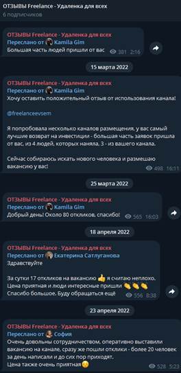 Отзывы о телеграм-канале «Удаленка для всех»