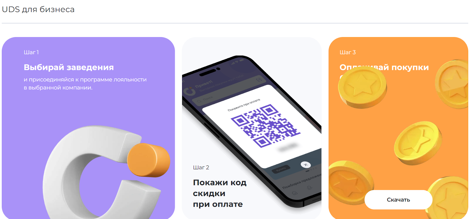 Проект «ЮДС гейм» начал работать с 2018 года. Данный сервис связан с распространением информации среди пользователей по принципу рекомендаций. Это позволяет повысить уровень продаж без больших расходов и рекламных бюджетов. Люди могут накапливать и списывать при покупке бонусные баллы. Официальное приложение Getuds app продвигается как отличное решение для тех, кто любит бонусы и скидки. В нем собираются лучшие предложения в городе пользователя.
