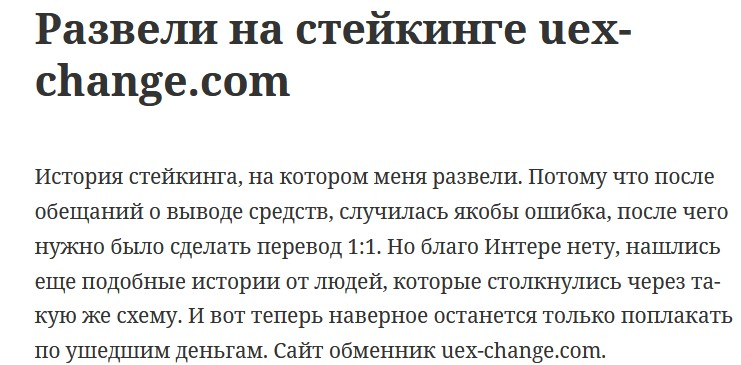 UEX: отзывы об обменнике, разоблачение фейкового сервиса uex change com