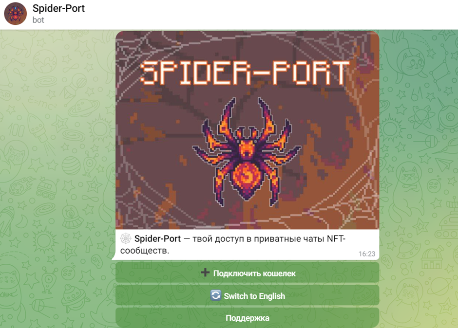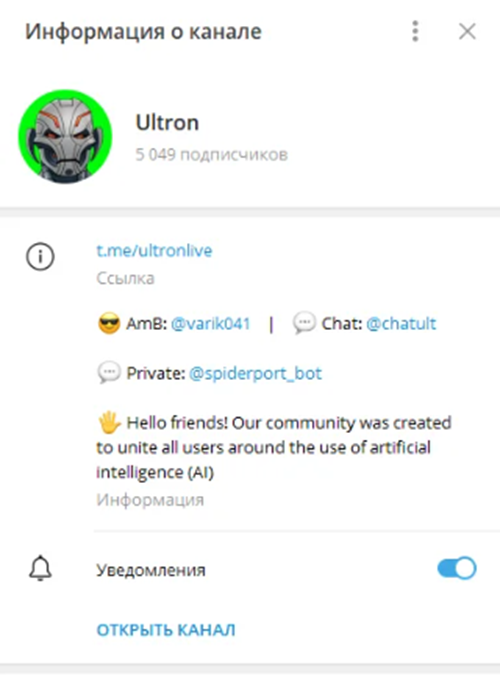 По большей части проект был доступен в телеграмм-канале Ultronlive. В сообществе публикуется основная информация об инвестировании в крипту. Сообщается, что все транзакции производятся специальным ИИ. Он самостоятельно выбирает перспективные токены и подробно все показывает на канале. Однако никаких доказательств, что Spiderport bot действительно зарабатывает, разработчики, не опубликовали. Есть лишь пометка, что робот был разработан на основе ИИ ChatGPT-4.