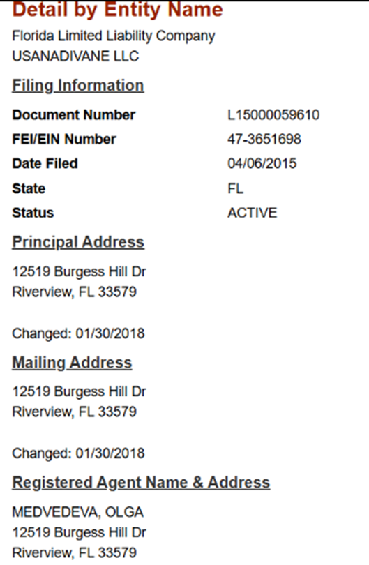 Проект Undbox com – официальная американская компания, которая зарегистрирована в безналоговом штате Флорида под именем UsaNaDivane LLC. Ранее деятельность велась под именем Usanadivane с сайта Usanadivane com, но затем произошел ребрендинг, но регистрационные данные остались прежними, что является довольно распространенной практикой.
